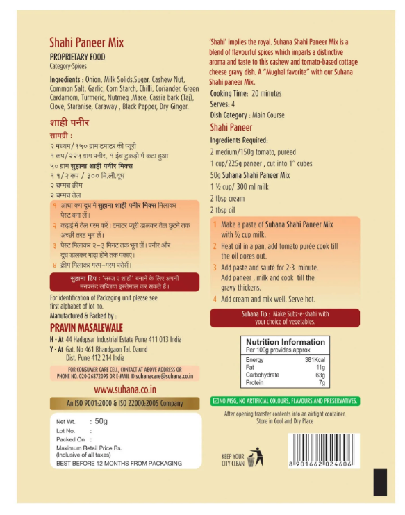 Be the first to review “Suhana Shahi Paneer Mix 50gm”